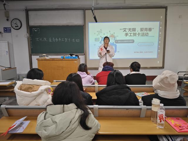 一张手工贺卡,满含创意,更寄托着同学们对艾滋病防治的热忱与关怀。在此次预防艾滋病宣传活动开场,同学们踊跃分享自己精心制作的贺卡。展示形式多元,或借助PPT,图文并茂展现贺卡巧思;或与台下互动,在一问一答间解读设计寓意;还有播放制作视频的,以点滴记录,还原创作初心。这些贺卡各具风格,却有着共同的三个内核,第一,普及艾滋病基础认知,像传播途径、流行态势;第二,揭示其对个人、家庭乃至社会的深远危害;第三,更给出有效防控“良方”。同学们以笔为剑、以纸传声,宣示抵御艾滋病的坚定决心,呼吁珍视健康、远离高危行为。讲解之际,大家畅所欲言,从不同视角表达对艾滋病的看法,倡导以爱守护生命,用实际行动抗击病魔,给予患者关怀与尊重。评委依据严谨评分细则,对每份作品审慎评定。最终,宋涵涵、生俊涵脱颖而出,斩获一等奖;马铣淼、侯雨萌等同学喜获二等奖;吕博远等同学荣获三等奖。
