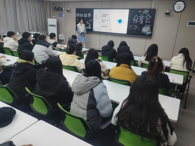 活动在热烈的氛围中拉开序幕,刘俊杰同学以自己的科研历程为线索,慷慨分享了从踏入实验室,到参与科研竞赛的丰富经历。她详细讲述了如何选择导师、在众多研究领域中明确自己的研究方向,在实验过程中遇到困境时如何调整心态、寻求突破的方法等。同学们跟随着刘俊杰的讲述,在研究领域中不断挖掘,大胆质疑、勇于实践,克服竞赛中遇到的种种困难。