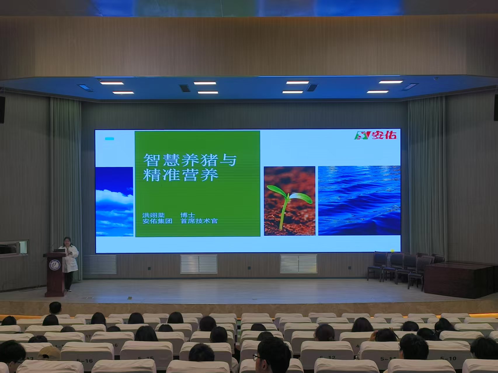 为深化校企合作,4月21日,澳门十大电子正规游戏网站于实训楼报告厅举办“智能养猪及精准养殖”主题讲座活动。安佑生物科技集团股份有限公司首席技术官洪翊棻担任主讲嘉宾。