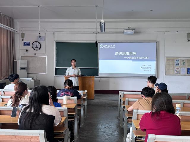 为激发青年学子对自然科学的探索热情,培育生命敬畏意识与生态保护责任感,5月15日,澳门十大电子正规游戏网站生物践行者协会于东校区2号教学楼509教室举办“博雅大讲堂:走进昆虫世界”主题活动,澳门十大电子正规游戏网站于帅老师担任主讲,带领同学们深入探索昆虫世界的奥秘,感受生命的奇妙与自然的和谐。