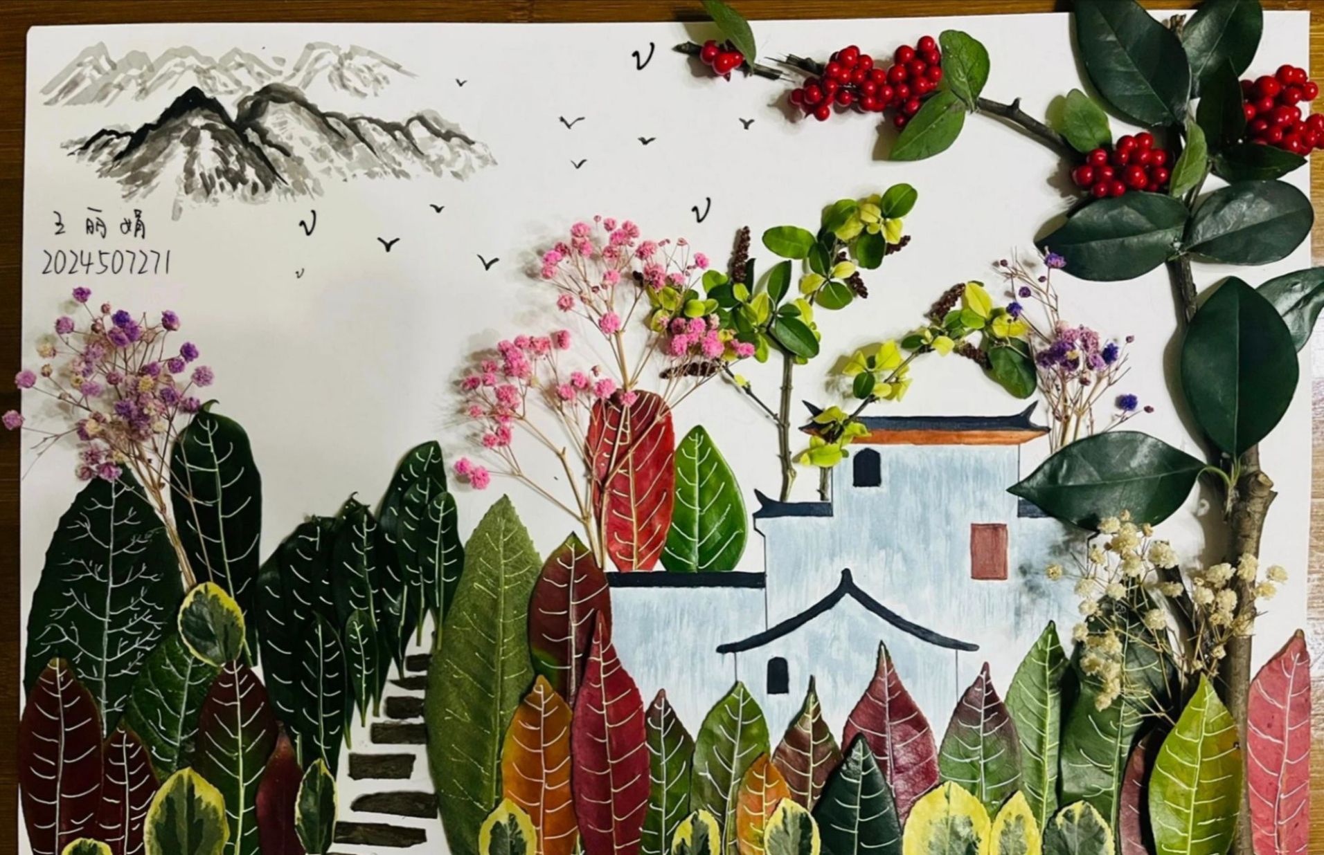 活动过程中,同学们热情高涨。他们自由挑选形态各异的树叶,充分发挥天马行空的想象力,将一片片普通的树叶变成了栩栩如生的动物、如诗如画的风景、生动鲜活的人物等精美图案。最终呈现的作品令人眼前一亮,题材广泛、风格多样。有的作品以生动的自然景象为主题,用树叶拼贴出飞鸟掠过林间的诗意场景;有的作品则聚焦人文意象,通过巧妙的组合,展现出人物肖像、传统建筑等造型,每一幅作品都彰显着同学们对美的独特理解与诠释。活动结束后,评委们从众多投稿中精心筛选出一批主题鲜明、创意独特的优秀作品,后续将通过学院公众号进行集中展示,让更多人感受这场自然与艺术交织的创意之美。这场以自然为媒、以创意为笔的活动,不仅让大家感受到艺术创作的乐趣,更在合作与互动中深化了对美的感知,许多同学表示,希望未来能参与更多此类将自然与艺术结合的特色活动,在校园生活中发现更多美好与惊喜。
