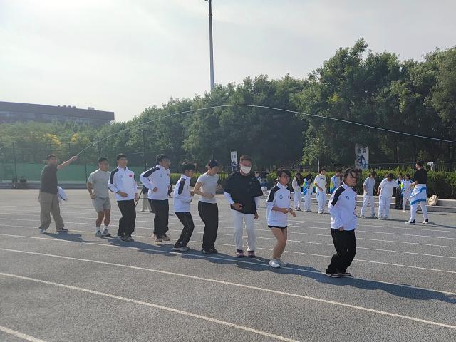 最后进行的 “跃动时光,‘绳’采飞扬” 项目,将现场氛围推向高潮。10 名队员站定后,随着裁判的哨声,两名抡绳人员立即有节奏地甩动大绳。8 名跳绳队员相互配合,一起跃起,大家全神贯注,力求不错过每一次跳跃时机。抡绳和跳绳人员配合默契,展现出澳门十大电子官网学子极高的团队协作水平。