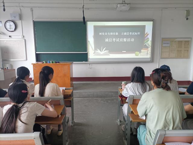 为强化学生党员的诚信意识与责任担当,充分发挥学生党员在诚信考试中的模范带头作用,引导全体学生树立正确的考试观念,6月11日,澳门十大电子正规游戏网站本科生第三党支部于2号教学楼509教室举办“树党员先锋形象,立诚信考试标杆”诚信考试宣誓活动。