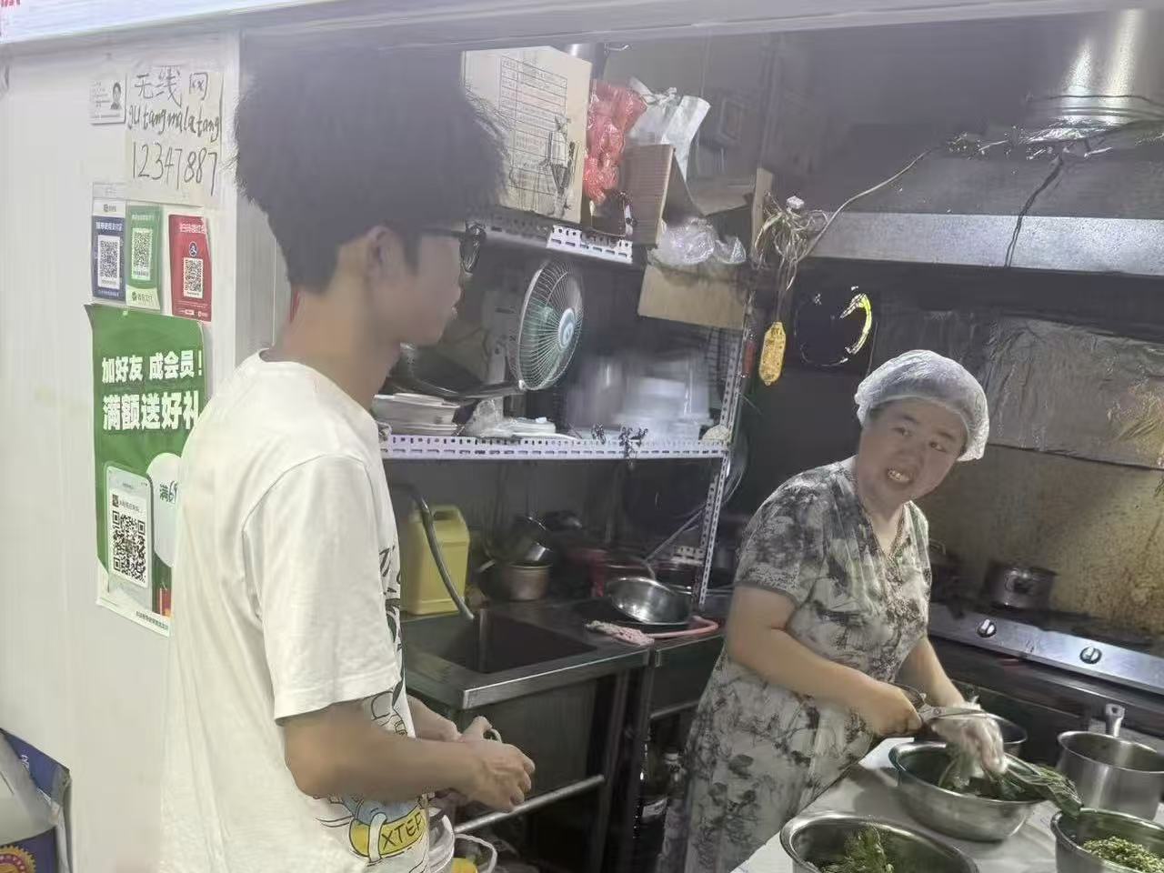 阿姨投身餐饮行业,源于对“实在做餐饮”的朴素信念——从反复钻研骨汤配方,到敲定店铺招牌,她始终把“品质”放在首位:明档操作让制作过程公开透明,新鲜食材整齐摆放供顾客直观查看,“客人吃得放心,生意才能长久,这是最实在的理”,阿姨的话里满是真诚。谈及未来,阿姨眼神里透着光亮:既要守住老手艺熬汤、选料的“笨功夫”,也想尝试线上推广、搞会员活动,和顾客拉近距离。服务队队员李仁杰感叹道:以前总觉得创业要靠‘巧劲’,原来‘实在’才是最稳的根基。