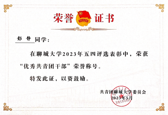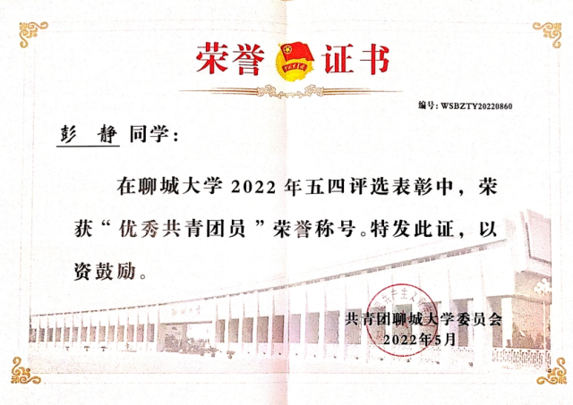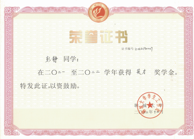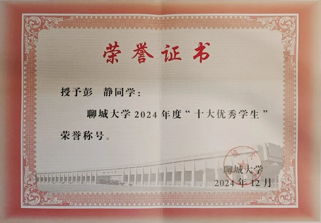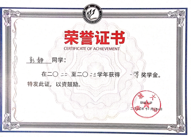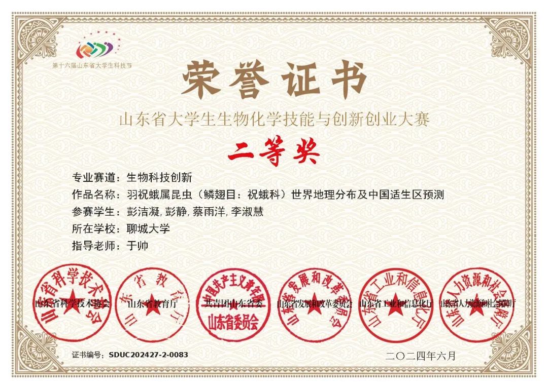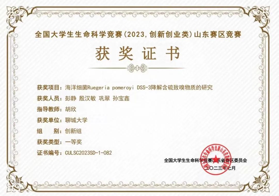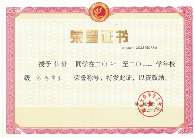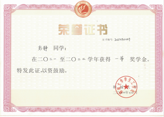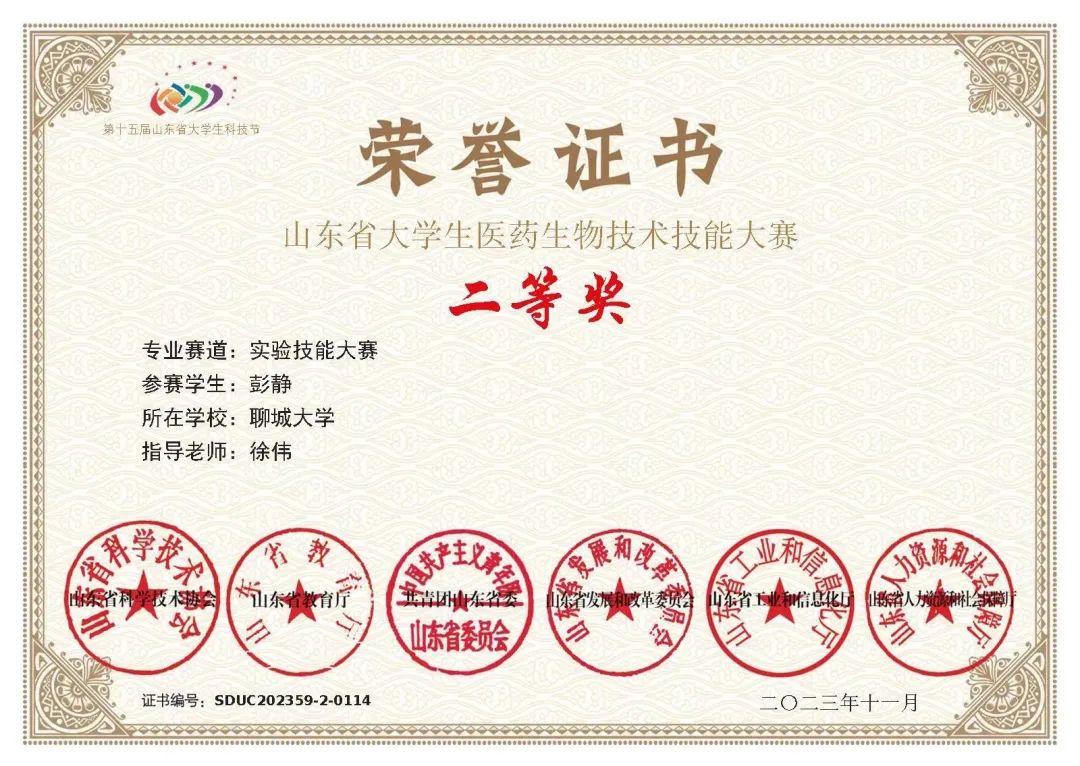 学习和综合测评成绩连续三年班级第一,发表北大核心期刊论文2篇;曾获国家奖学金、山东省优秀学生干部等荣誉;获第八届全国大学生生命科学竞赛(创新创业类)三等奖等8项省级及以上学科竞赛奖项,现已推免至山东大学攻读硕士研究生。