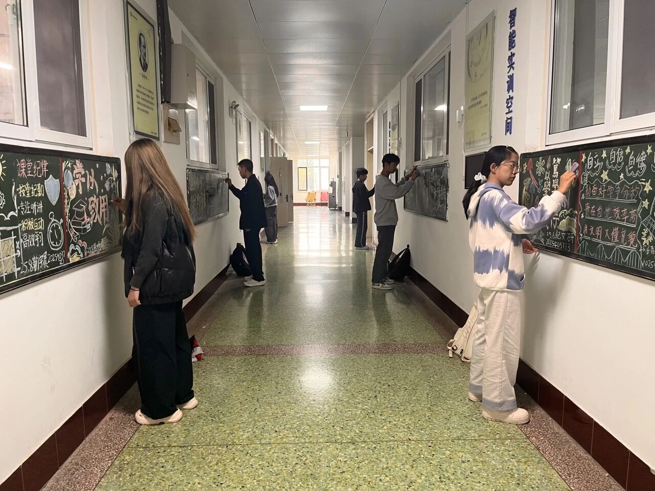 为激发学生学习热情,增强班级凝聚力,营造良好的学风氛围,10月18日,澳门十大电子正规游戏网站于东校区2号教学楼4楼走廊举办“笔墨传学风,板上育新人”学风建设主题黑板报创作活动。