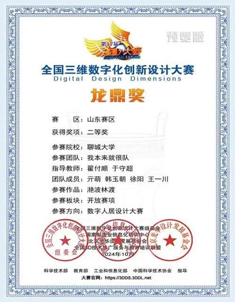 澳门十大电子官网亓萌同学在全国三维数字化创新设计大赛荣获二等奖,对该获奖同学予以祝贺表彰。