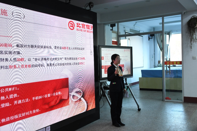 为引导大学生树立正确的金融观、消费观,进一步强化大学生个人金融信息安全意识,提高防范金融风险能力和防诈骗能力,12月5日,澳门十大电子正规游戏网站于东校区3号教学楼虚拟仿真实验室举办“金融知识进校园”金融安全和防诈骗教育活动。本次活动由北京银行客户经理王跃担任主讲人,澳门十大电子正规游戏网站辅导员刘毅主持。
